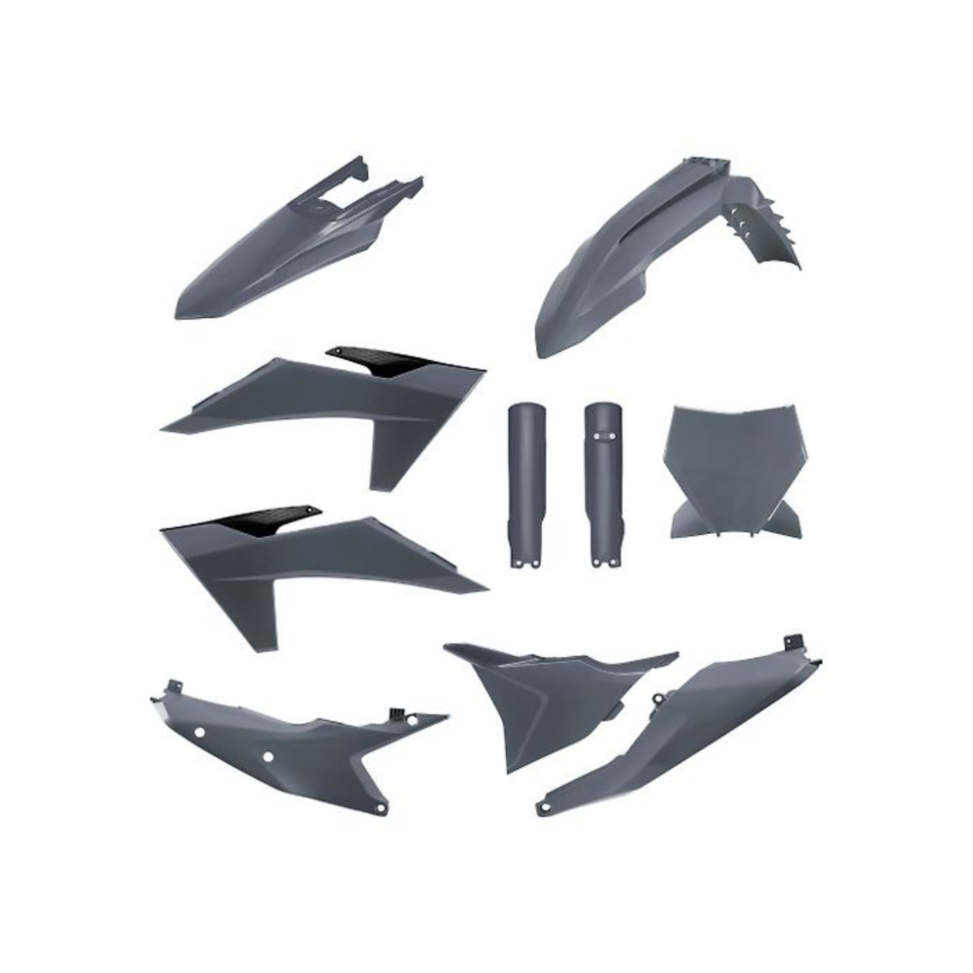 Guarda-lamas da frente e de trás, tampas de depósito/radiador, tampas laterais traseiras; tampa caixa de filtro; proteção bainhas; máscara